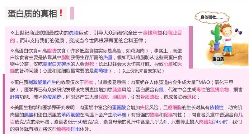 通过上述可知,通过肉蛋奶来摄取蛋白质是不靠谱的而且危害极大。如果您对鸡蛋牛奶仍抱有一丝丝幻想,请点击以下两篇: