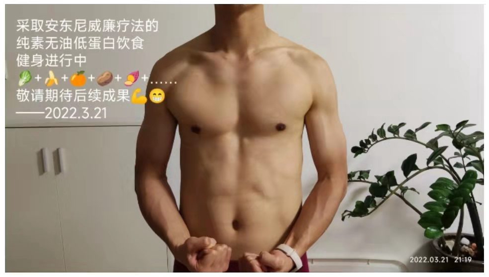 下图这位也是一位典型!因为他在运动健身期间,采用的是安东尼疗法中的高级净化食疗法“369净化疗法”。而这,是相当严格的生机饮食疗法,可以高效逆转和疗愈很多慢性疾病。这位安友将之用来提升肌肉和体力,也获得了非常理想的效果!详细请点击以下: