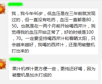 还有一种较为特殊的情况是,高血压病人在进行蔬果汁排毒时出现的血压偏低情况。这种情况也同样可以放心,不会出现血压严重偏低的状况,因为,这其实属于一种身体自身可以掌控的“排毒反应”(或称“疗愈反应”,中医称为“瞑眩反应”,指当病毒、毒素被从深处赶出来时,会产生类似于生病或者旧病复发的阶段性不舒服感受),基于自身身体可以接受的程度,这种血压偏低的排毒反应通常不会低得太离谱,因为这是由身体自身在掌控的疗愈过程。