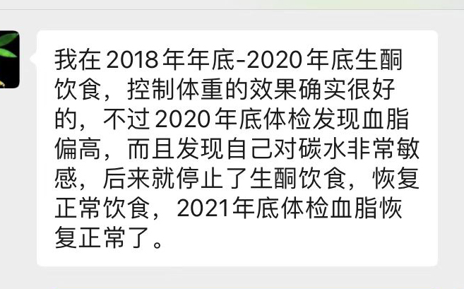 下面截屏来自一位生酮博主,公开道歉,放弃生酮了: