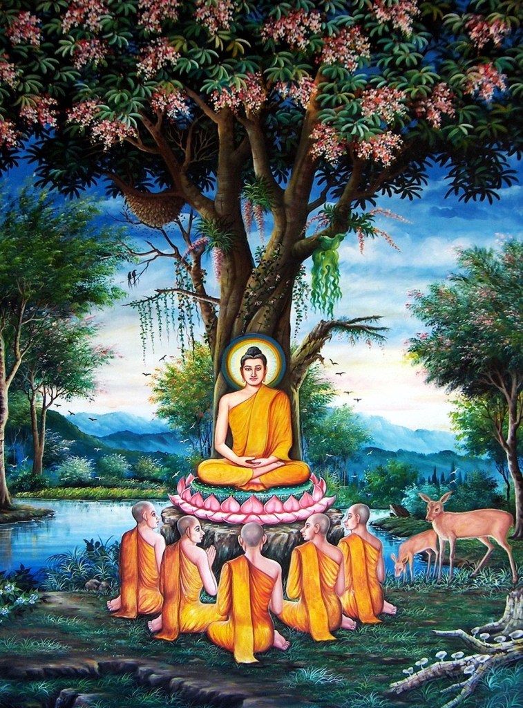 (世尊成道后在鹿野苑第一次给5个弟子上课。后世称为“初转法轮”。)