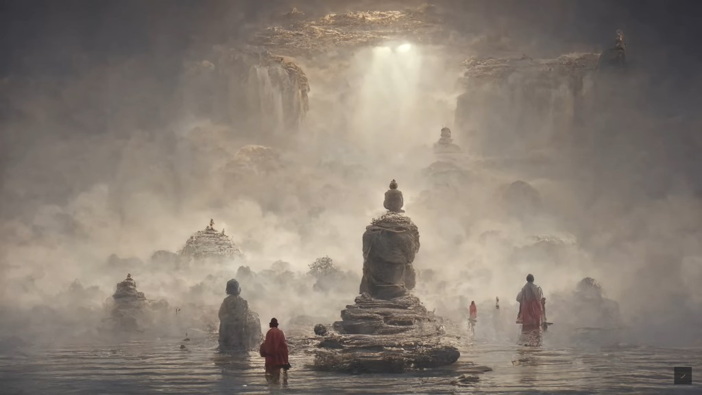 话说到这里,我想把缰绳往回拉一下。刚才我们讲到从原始佛教(广义来讲把南传佛教算进去),到大乘佛教的结集历史,就好像一群学者在严肃认真地给一堆文物反复做考古认证工作,然后忽然跑上来一小孩,递上他手上的东西说这也是同时期的文物。证据呢?那孩子就给大家讲了一个神话故事。