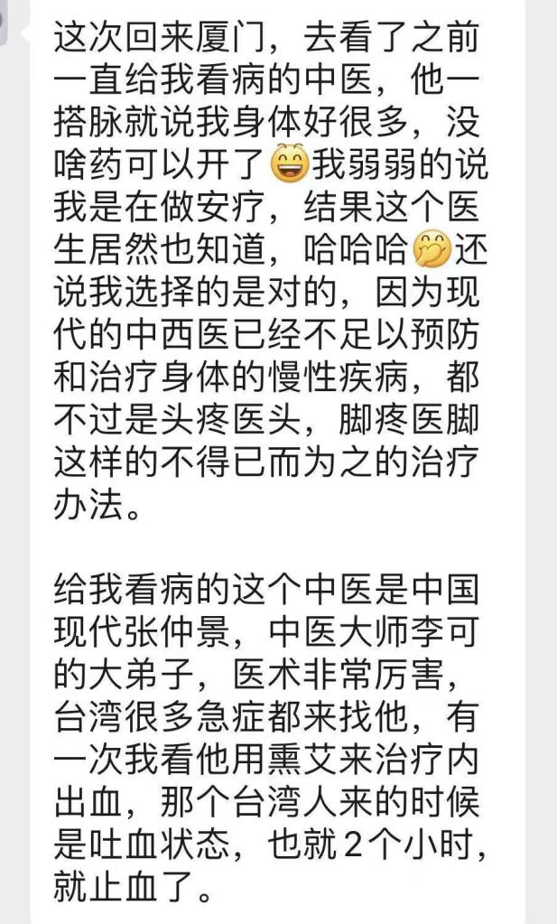 上面这三位群友的身体问题,最终都通过安东尼疗法获得了逆转。(注:上面说的“中药质量不好”是指新闻里播报的,现代中药材的种植缺乏监管,大多未等成熟就过早收成,而且含重金属超标的状况很严重。)