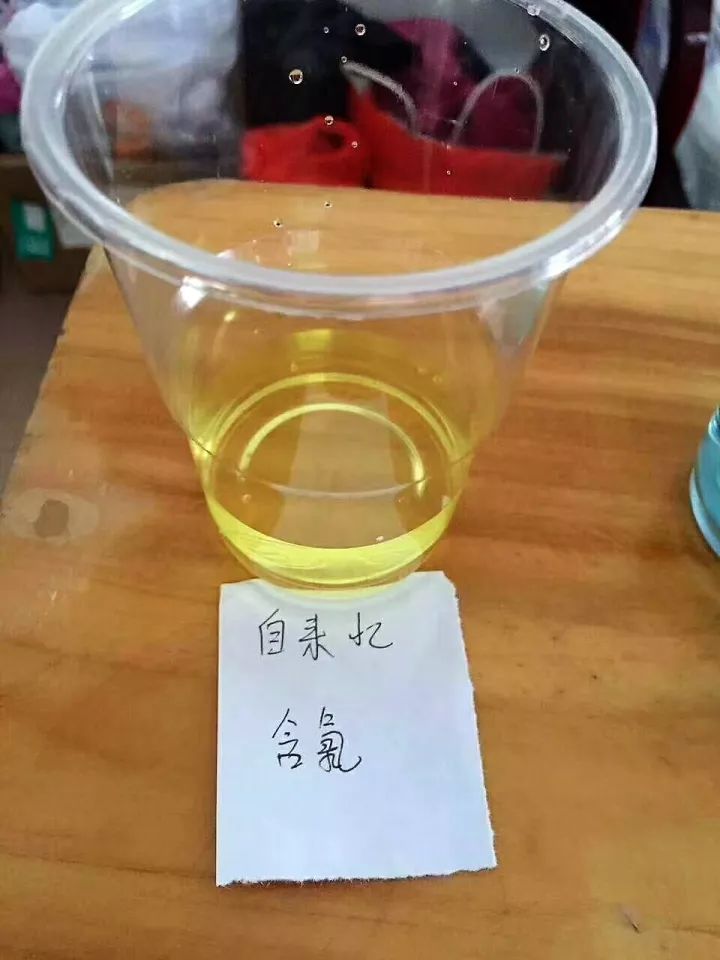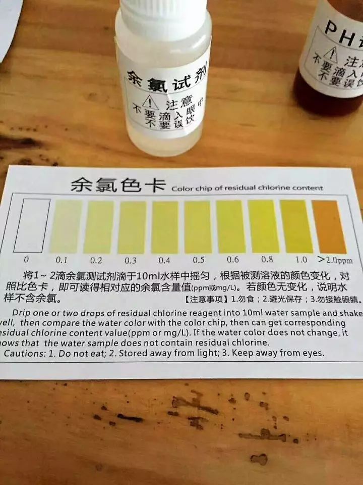 抱歉那个小视频没有链接提供。下面是来自网上用试剂测试自来水余氯含量的图片(来源请点这里):