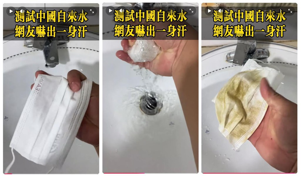 以下截频,则来自国内一位网友的小视频,他用崭新的口罩来测试自来水水质,所看到的惊人结果: