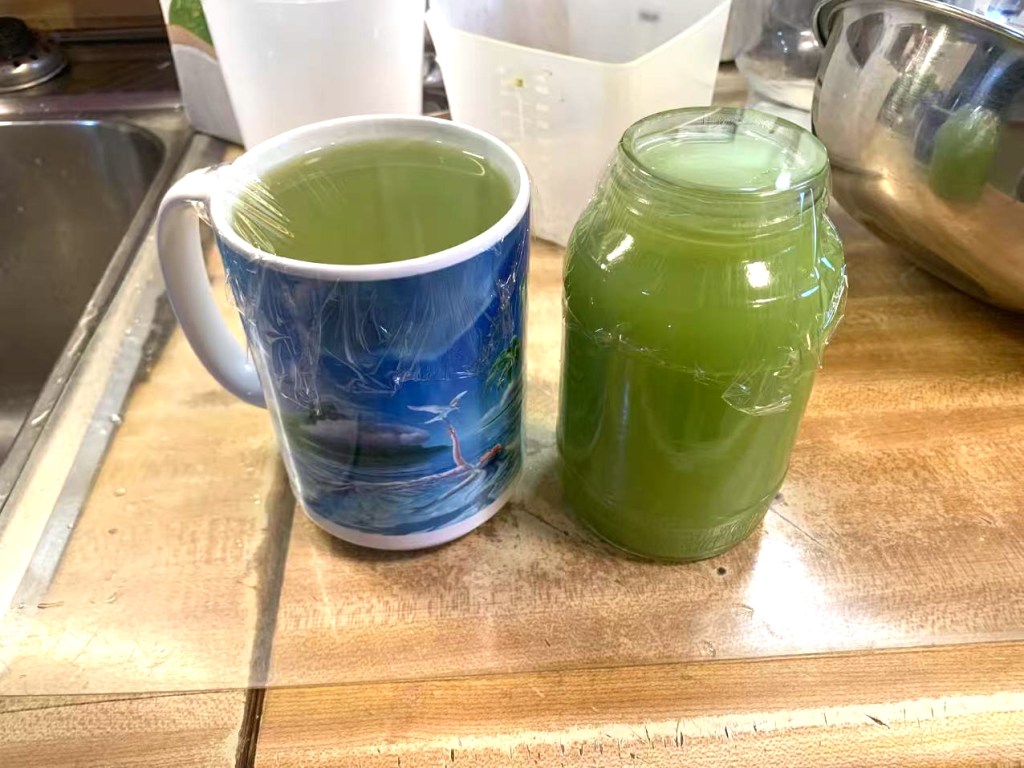 ※ 30分钟后,喝1000毫升西芹汁(是的,我特意买了较大的杯子^_^。因为我爸负责榨西芹汁,他不管你杯子大小,反正就每人两杯。)