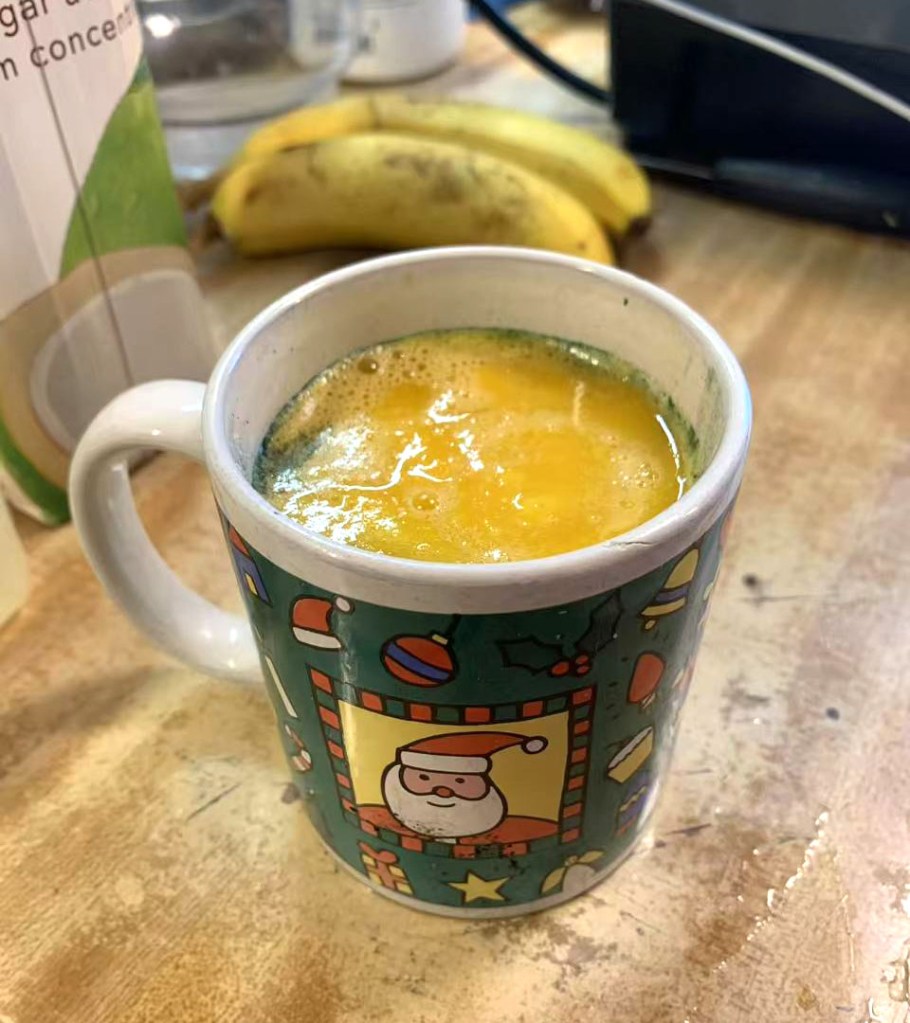 ※ 半杯至一杯水 water (或椰子水,或更多鲜榨橙汁)