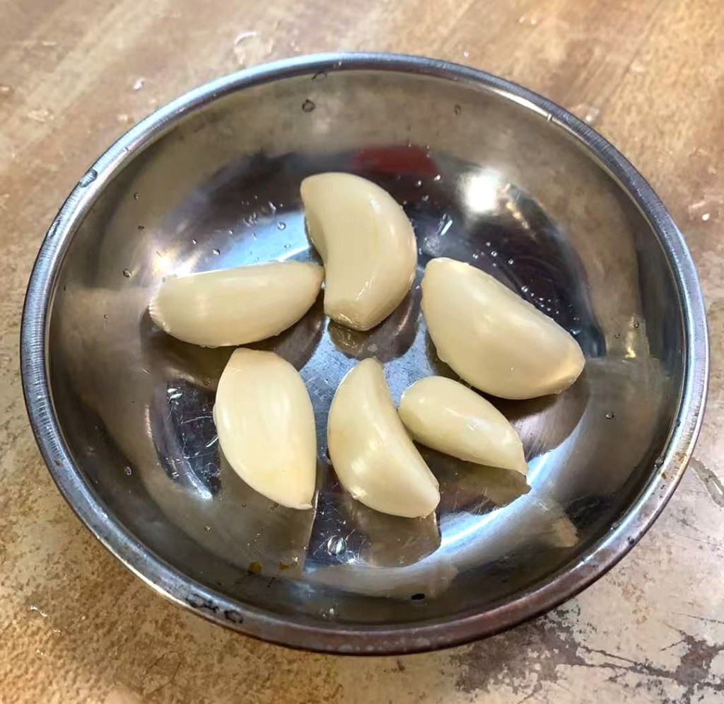 原菠菜汤里配一瓣大蒜,而安东尼在推荐大蒜的时候,建议每天吃 1 – 4 瓣大蒜。我这给加到了 6 – 8 瓣(约半颗,取决于对其味道的可接受度)。安东尼对于大蒜的推介请点这里。
