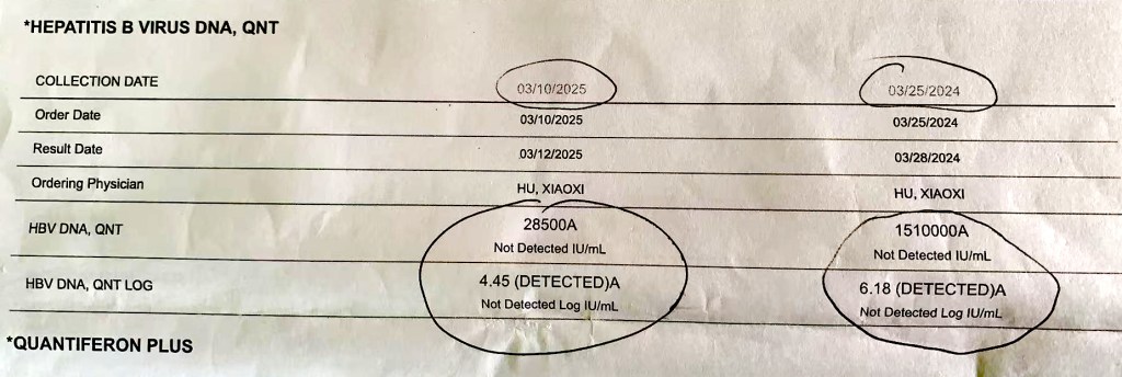 左边是2025年的肝病毒量:2.85万